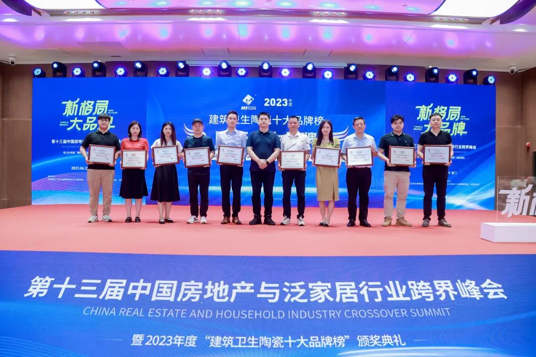 6月29日,由中國陶瓷工業協會瓷磚技術專業委員會指導、中國陶瓷網主辦的“新格局 大品牌”第十三屆中國房地產與泛家居行業跨界峰會暨2023年度“建築衛生陶瓷十大品牌榜”頒獎盛典在廈門隆重舉行。